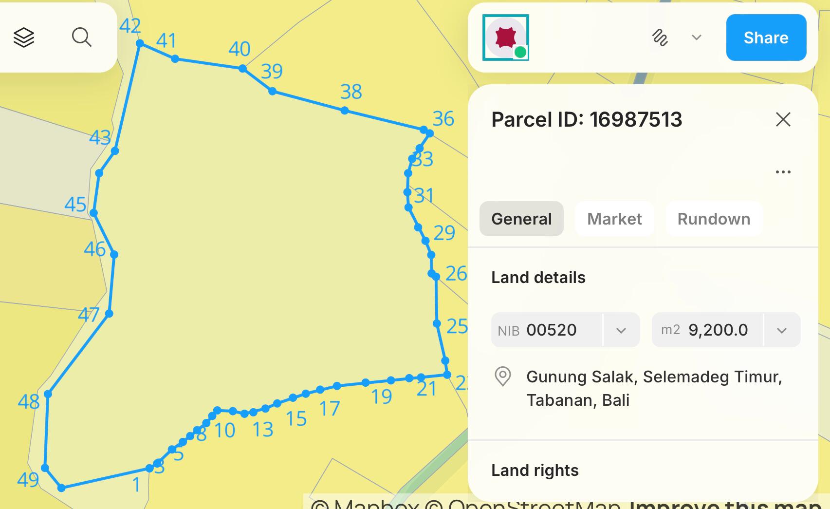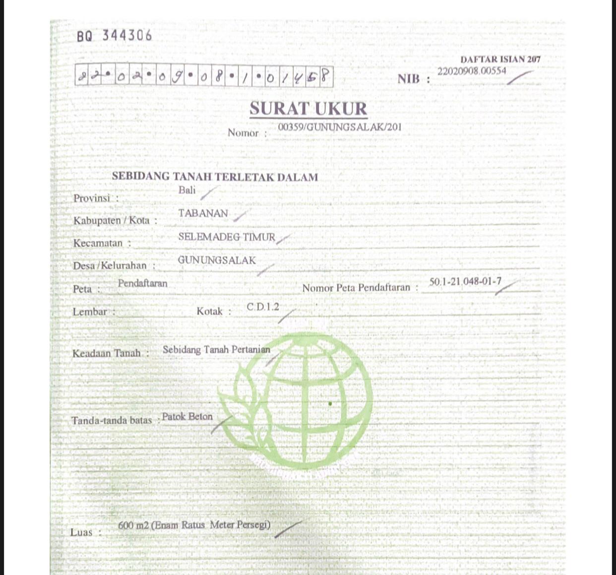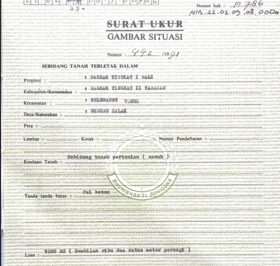 Luas Tanah 9800m2 / 98 Are